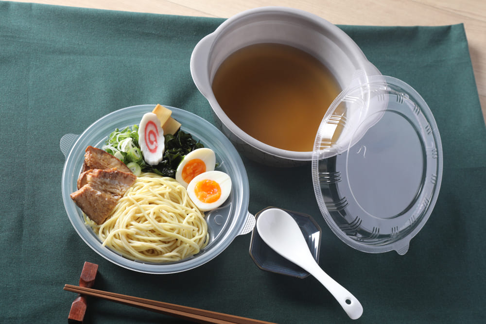 どんぶり・深皿容器麺類のテイクアウト用に最適なKDシリーズ。(内嵌合蓋でスープが漏れにくい)