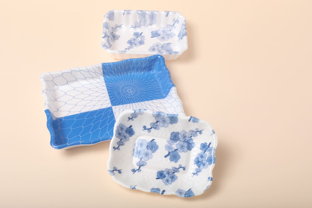 トレー・刺身皿お刺身・総菜等のトレーのまま食卓に乗せていただけます。新鮮さを保持し、食品を引き立てる優れたデザインが特徴です。各種色柄を揃えています。